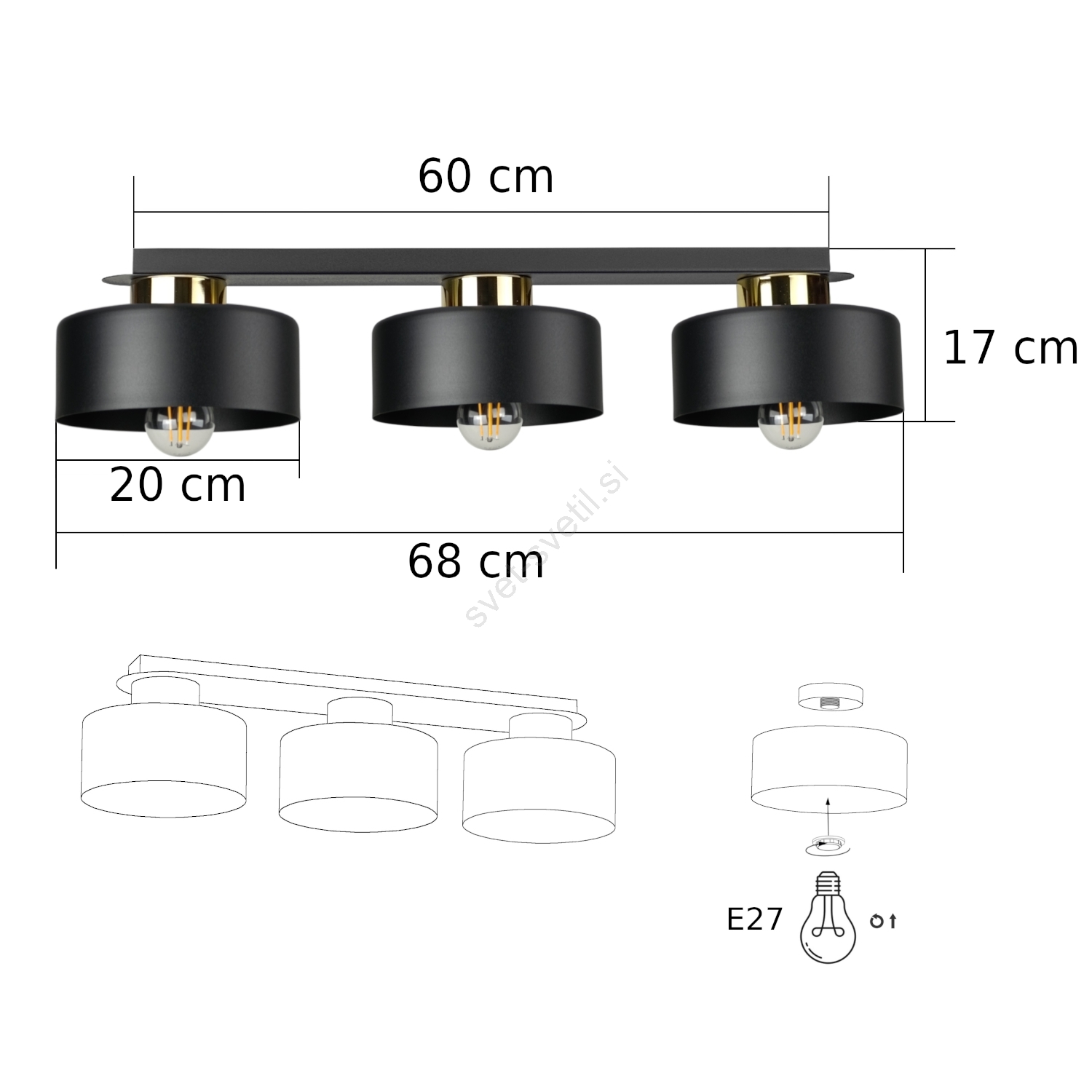• Stropna svetilka IGNIA 3xE27/60W/230V črna