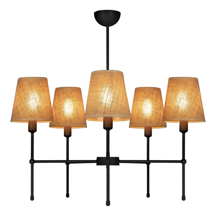 Stropni lestenec na palici MADELA 5xE14/40W/230V juta/črna je značilen lep in funkcionalen dizajn. Za svetilko je primerna žarnica z vznožkom E14. Tukaj lahko kupite ostale žarnice po ugodnih cenah.