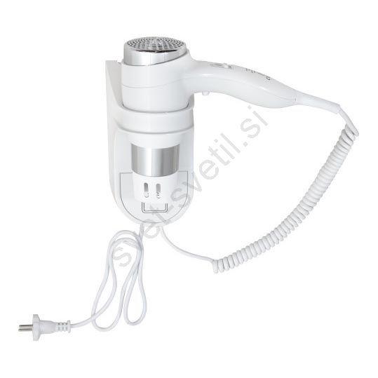 • Eleganten bel sušilnik za lase s stenskim nosilcem za prihranek prostora.