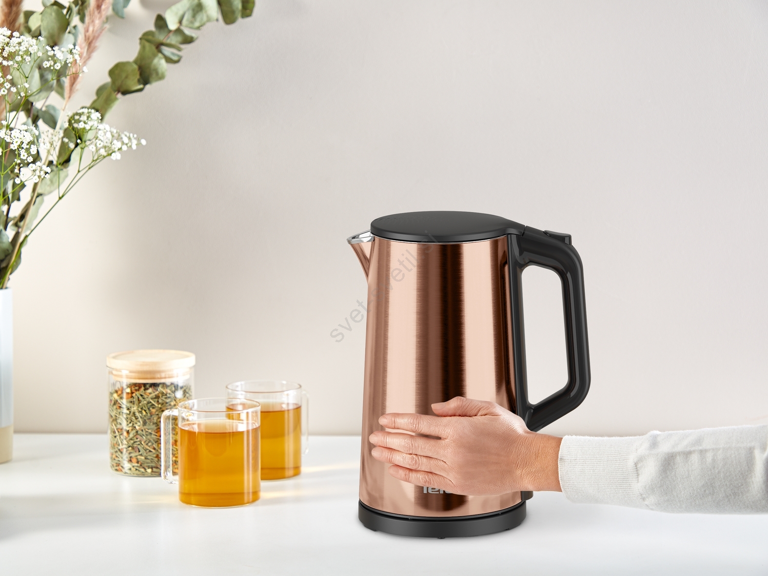 • Vrtljiva podlaga za 360° omogoča preprosto dvigovanje in odlaganje čajnika z vseh strani.