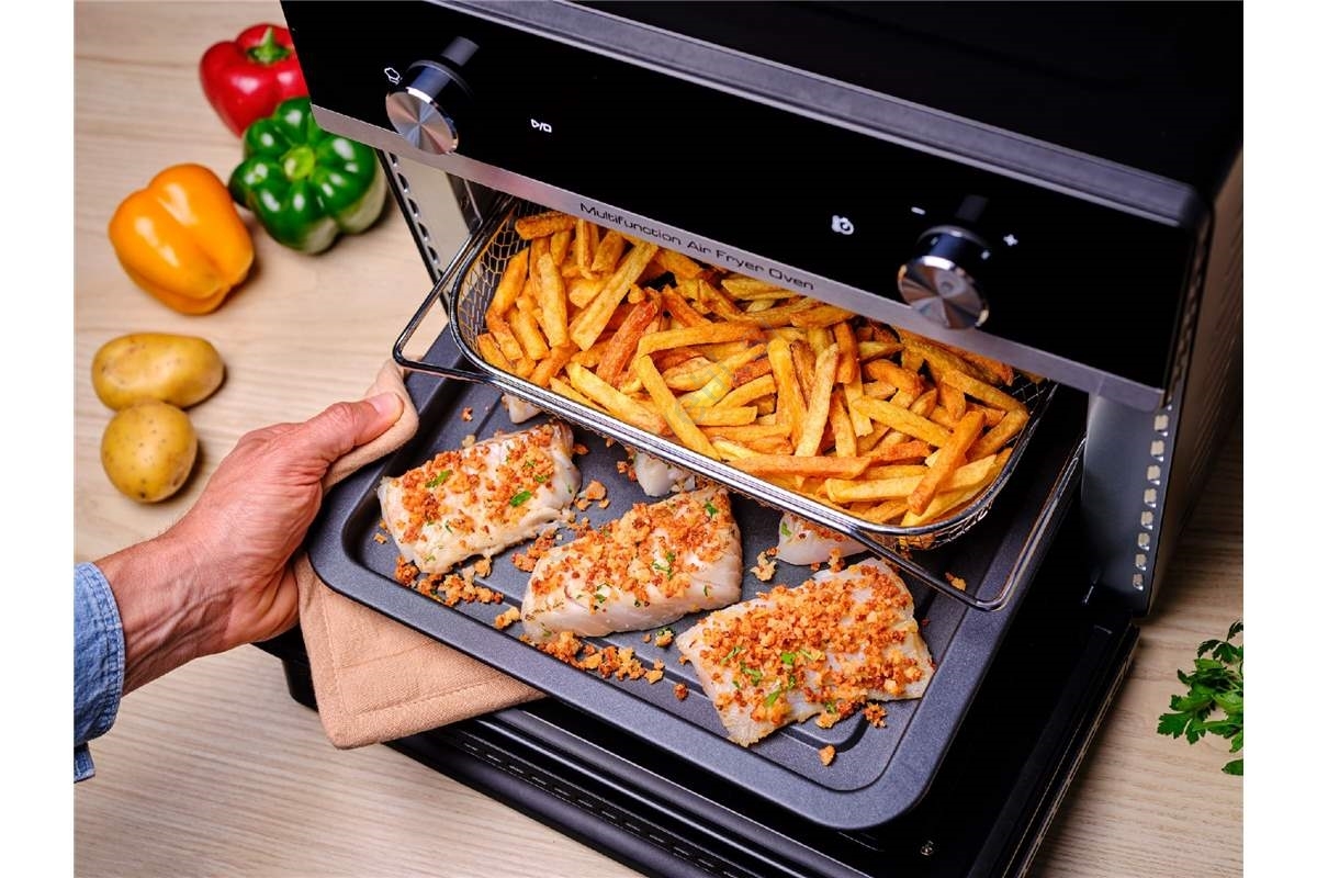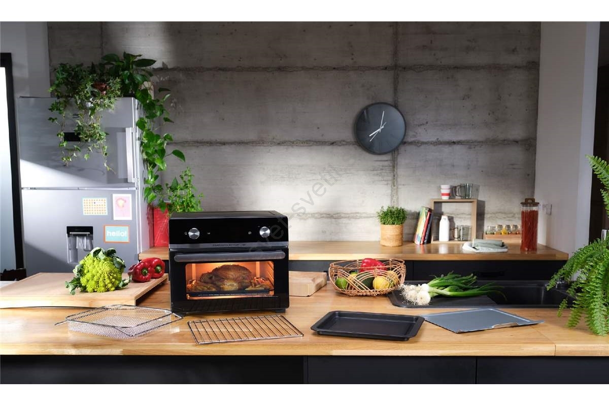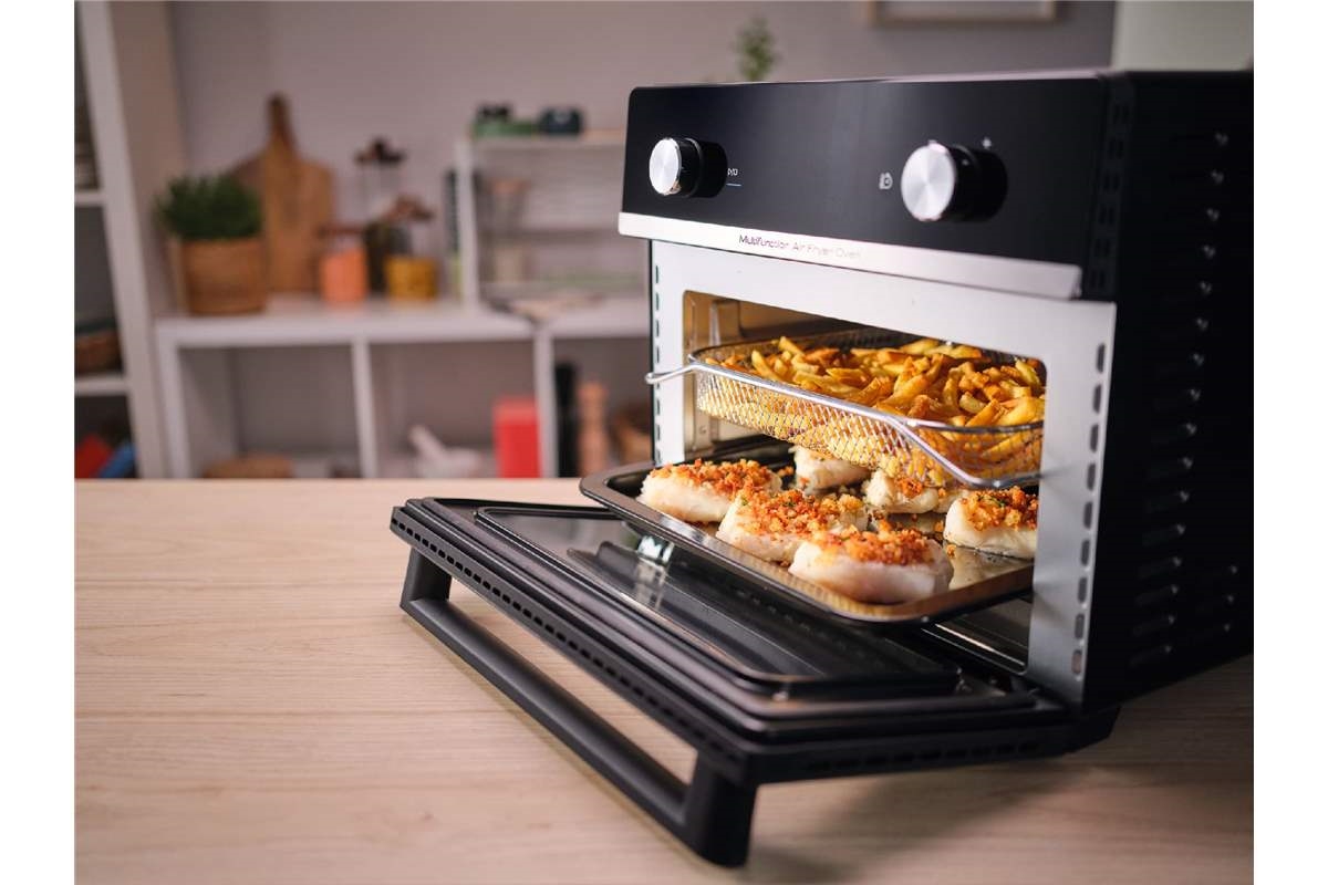• Velika friteza na vroč zrak in večfunkcijska pečica v enem — prostornina 20 l, idealna za pripravo jedi za družino ali manjšo družbo.