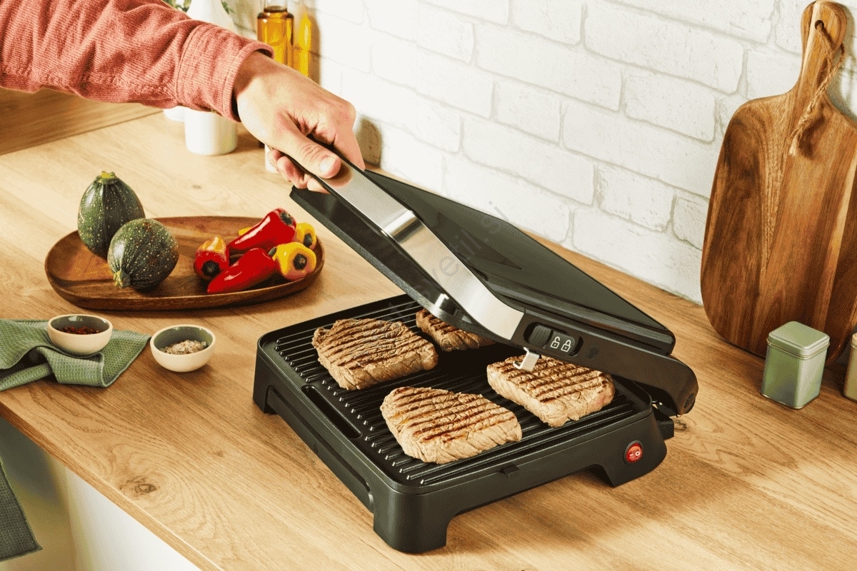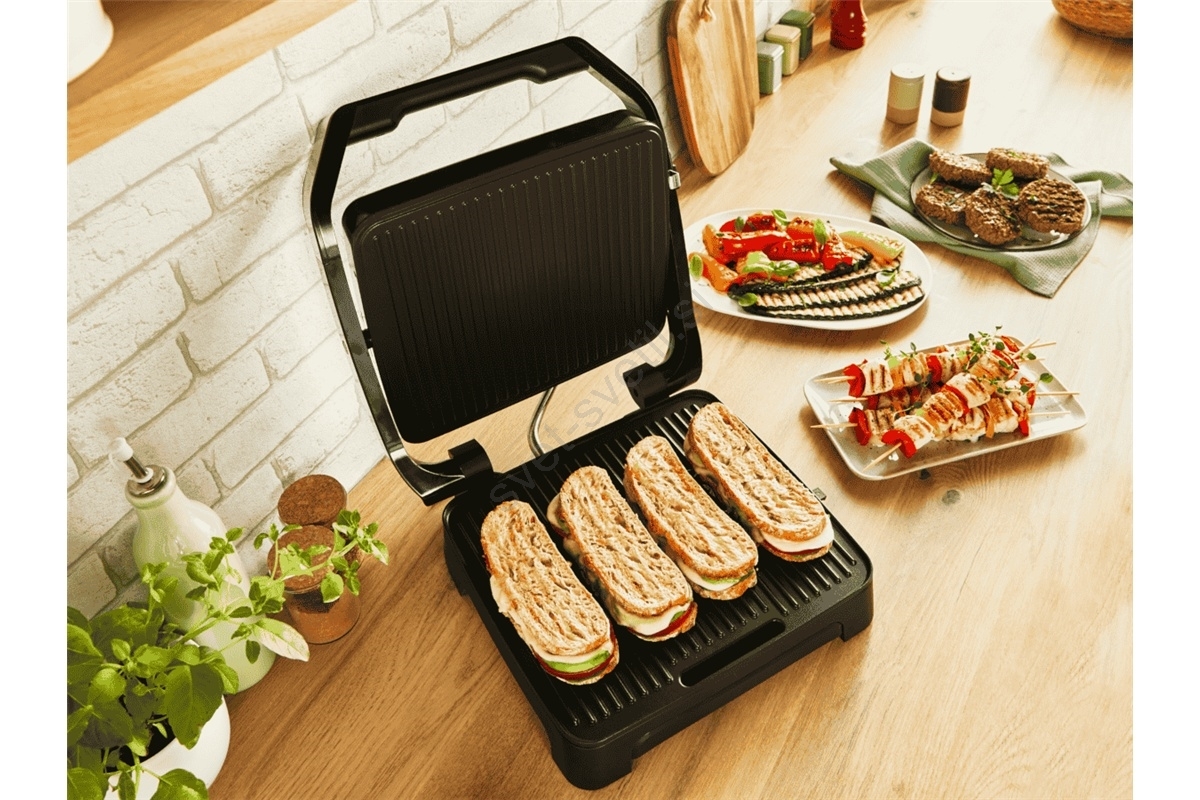 • Kontaktni žar „2-v-1“: združuje funkcijo aparata za panini in klasičnega žara – enostavno pripravite sendviče, meso, zelenjavo in tudi večje porcije.