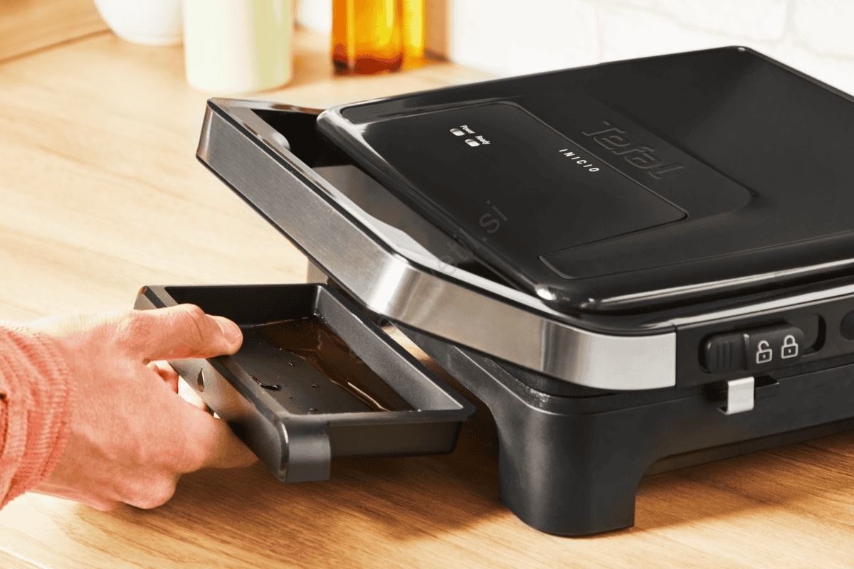 • Plošče s protiklepljivo prevleko za enostavno peko in čiščenje, priložena posoda za odcejanje maščobe – olajša vzdrževanje in povečuje higieno.