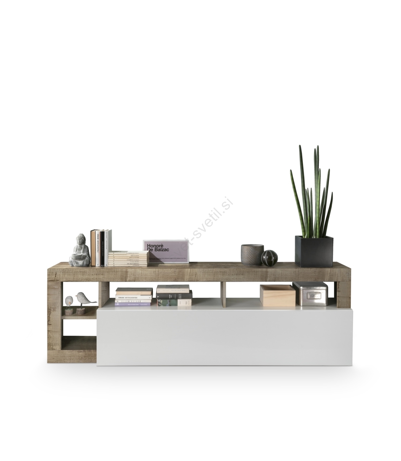 • Spodnji predal in odprte police nudijo prostor za knjige, okraske in gospodinjske potrebščine.