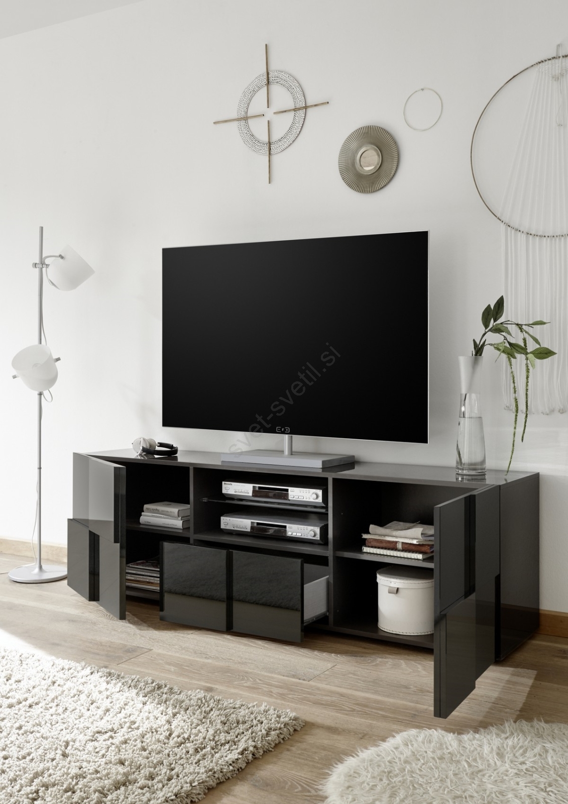 • Zaradi dolgega pravokotnega oblika je idealna za postavitev pod stensko televizijo ali kot sodobna rešitev za shranjevanje v dnevni sobi.