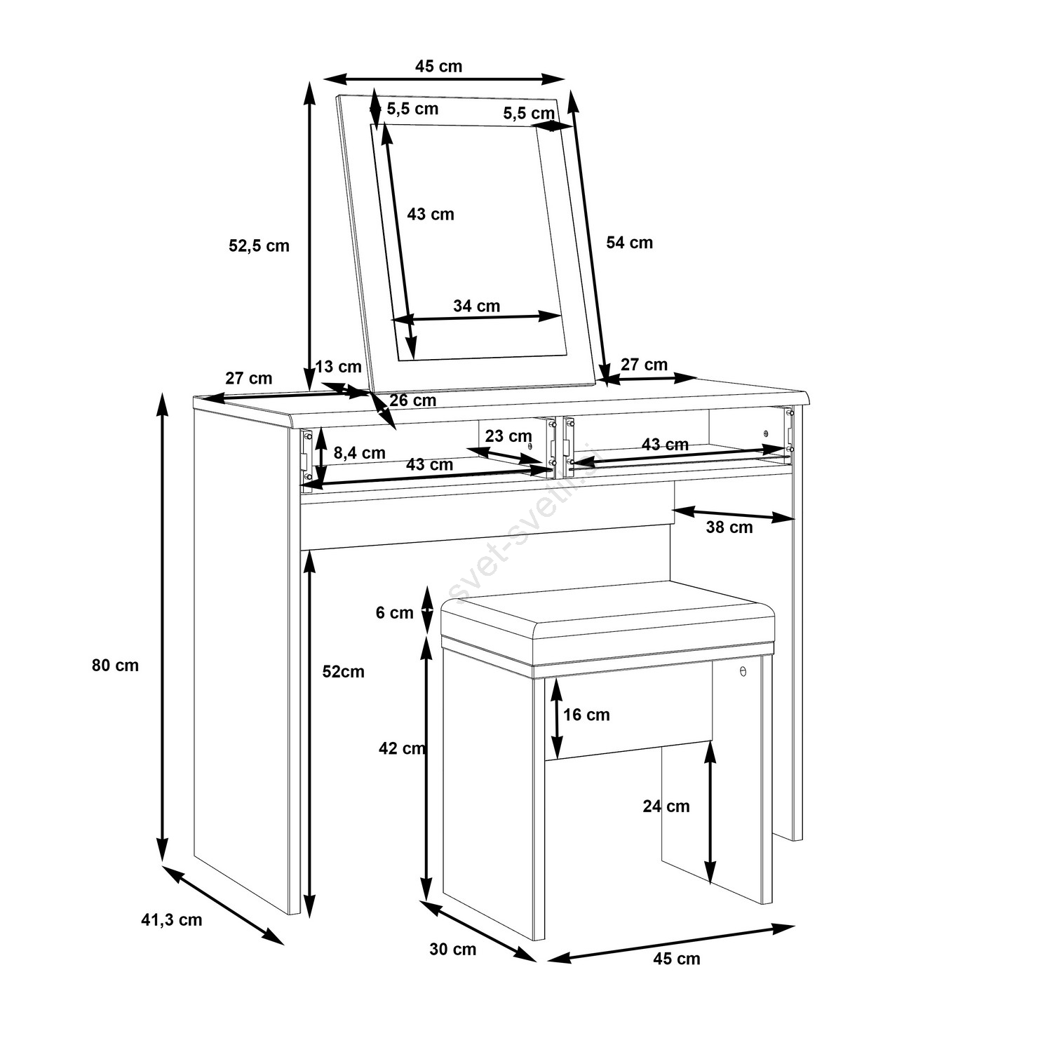 • Ponuja dva predala, ki zagotavljata veliko prostora za shranjevanje kozmetike in drugih predmetov.