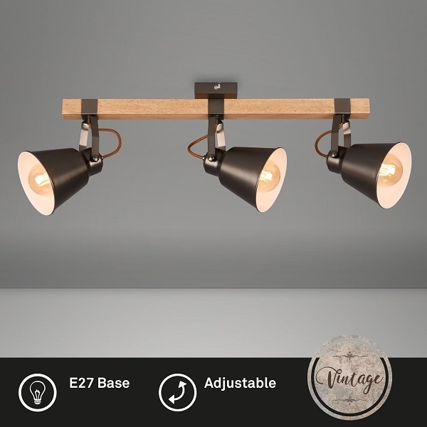 Točkovno svetilo RETRO 3xE27/40W/230V rjavo je značilen lep in funkcionalen dizajn. Za svetilko je primerna žarnica z vznožkom E27. Tukaj lahko kupite ostale žarnice po ugodnih cenah.