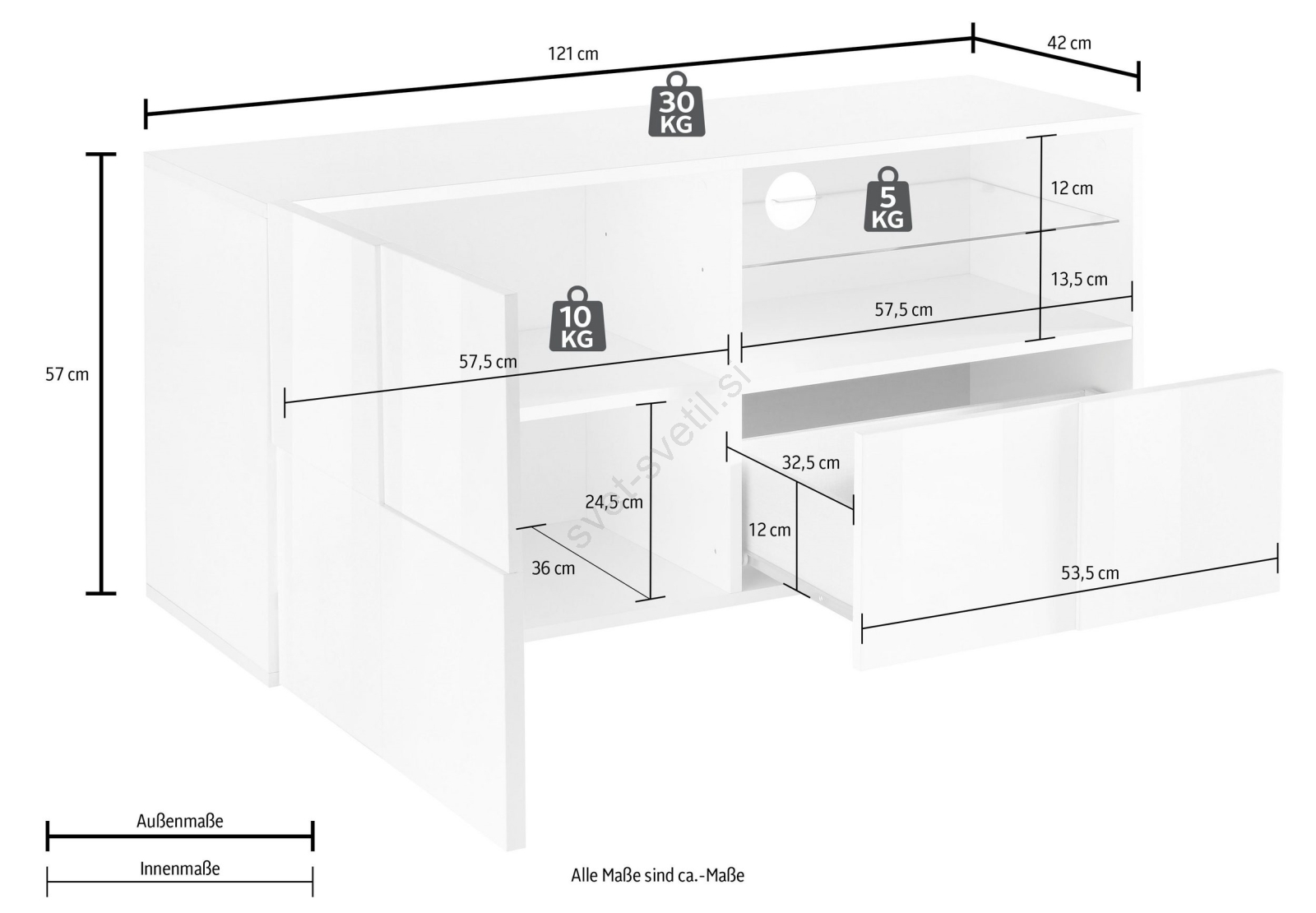 • Zaradi dolgega pravokotnega oblika je idealna za postavitev pod stensko televizijo ali kot sodobna shranjevalna rešitev v dnevni sobi.