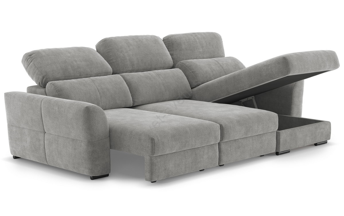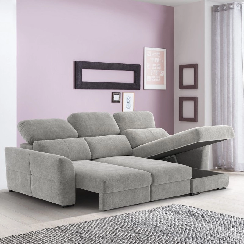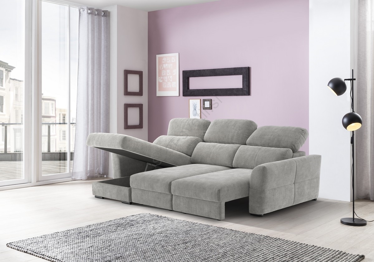 Univerzalen kotni raztegljiv trosed s predalom za shranjevanje TRENTO, svetlo siv