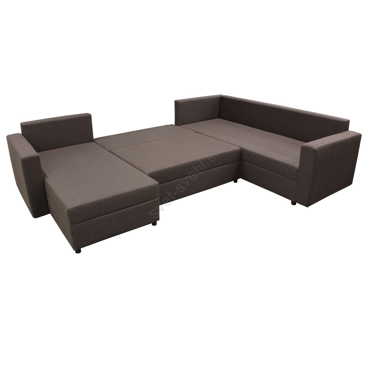 Univerzalna raztegljiva kotna sedežna garnitura v U-obliki SEYA z odlagalnim prostorom, rjava