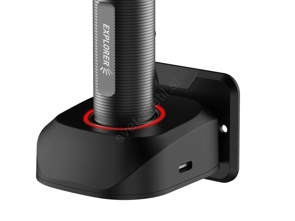 • Polnjenje preko USB-C priklopne postaje, ki je vključena v paket in omogoča priročno odlaganje ter polnjenje svetilke.