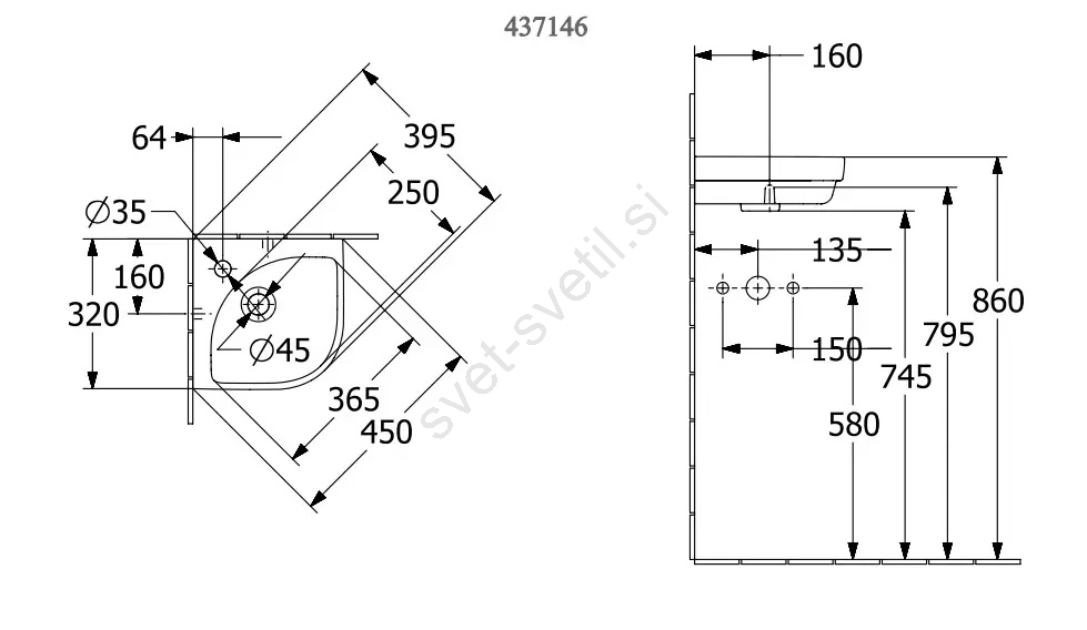 Villeroy & Boch 43714601 - Viseči kotni umivalnik SUBWAY 3.0 32x32 cm keramika/bela