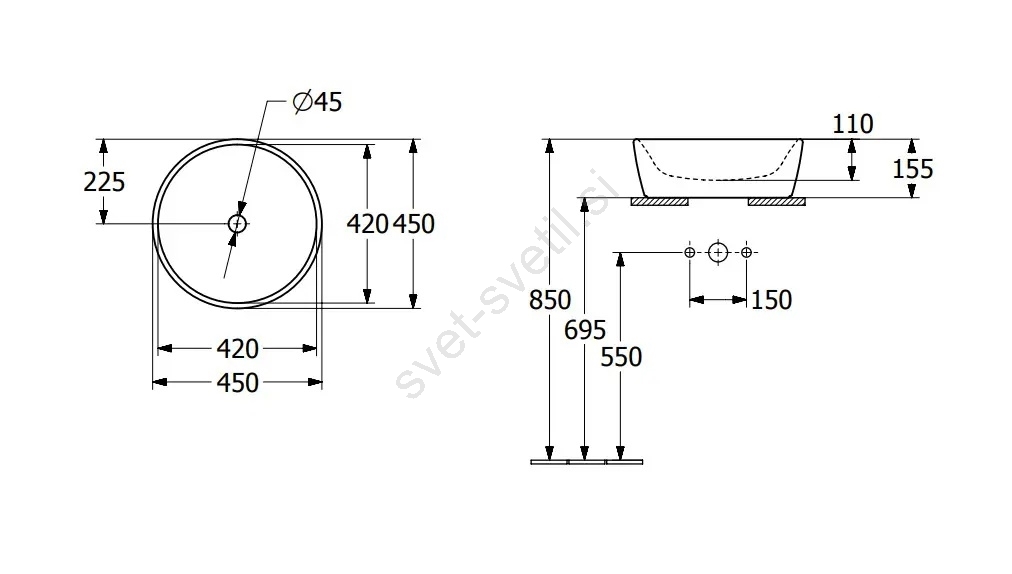 Villeroy & Boch 5A254501 - Umivalnik za na pult ARCHITECTURA Ø 45 cm keramika/bela