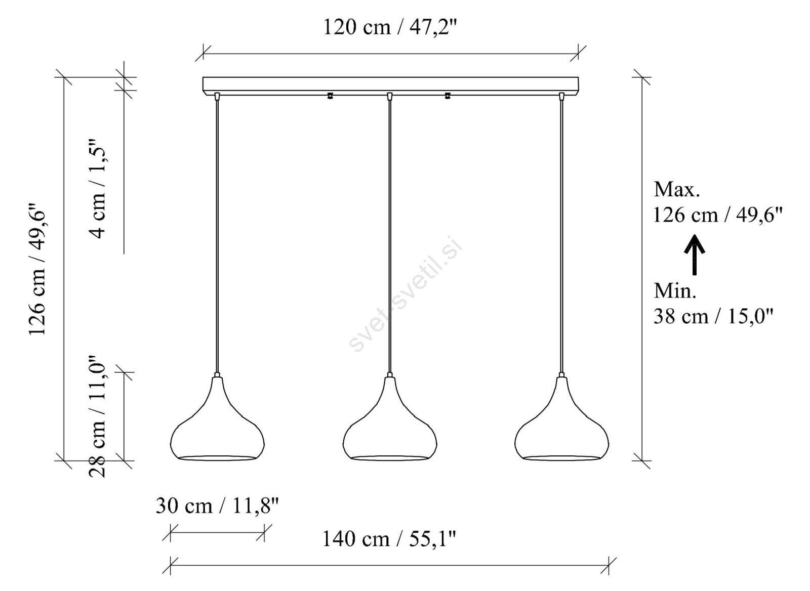 • Lestenec na kablu MUBA 3xE27/40W/230V bakren