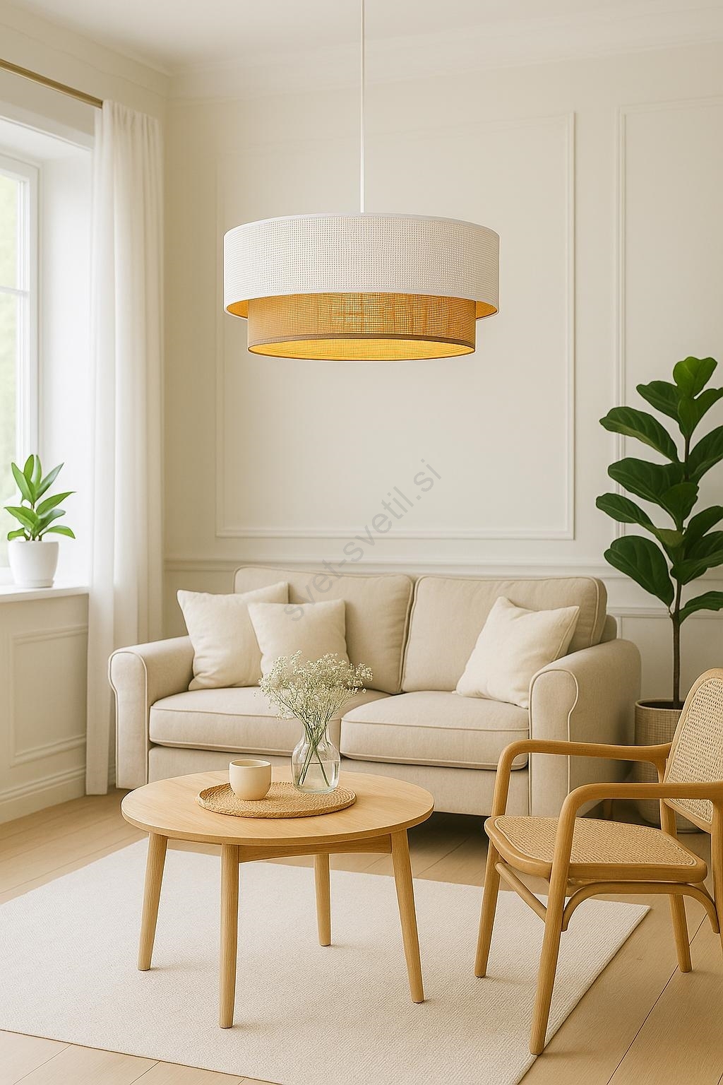 • Lestenec na vrvici BORHO 1xE27/60W/230V premer 50 cm bela/juta