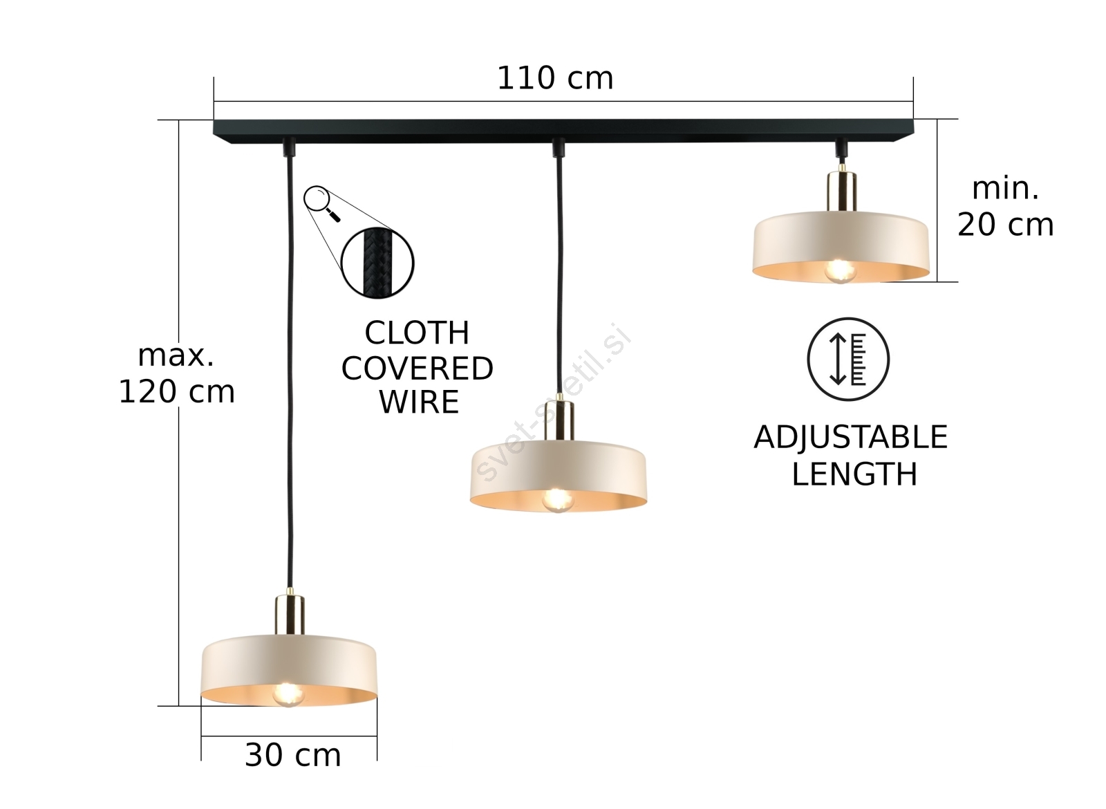 • Viseči lestenec LATTE na žici 3xE27/60W/230V bež/črna/zlata