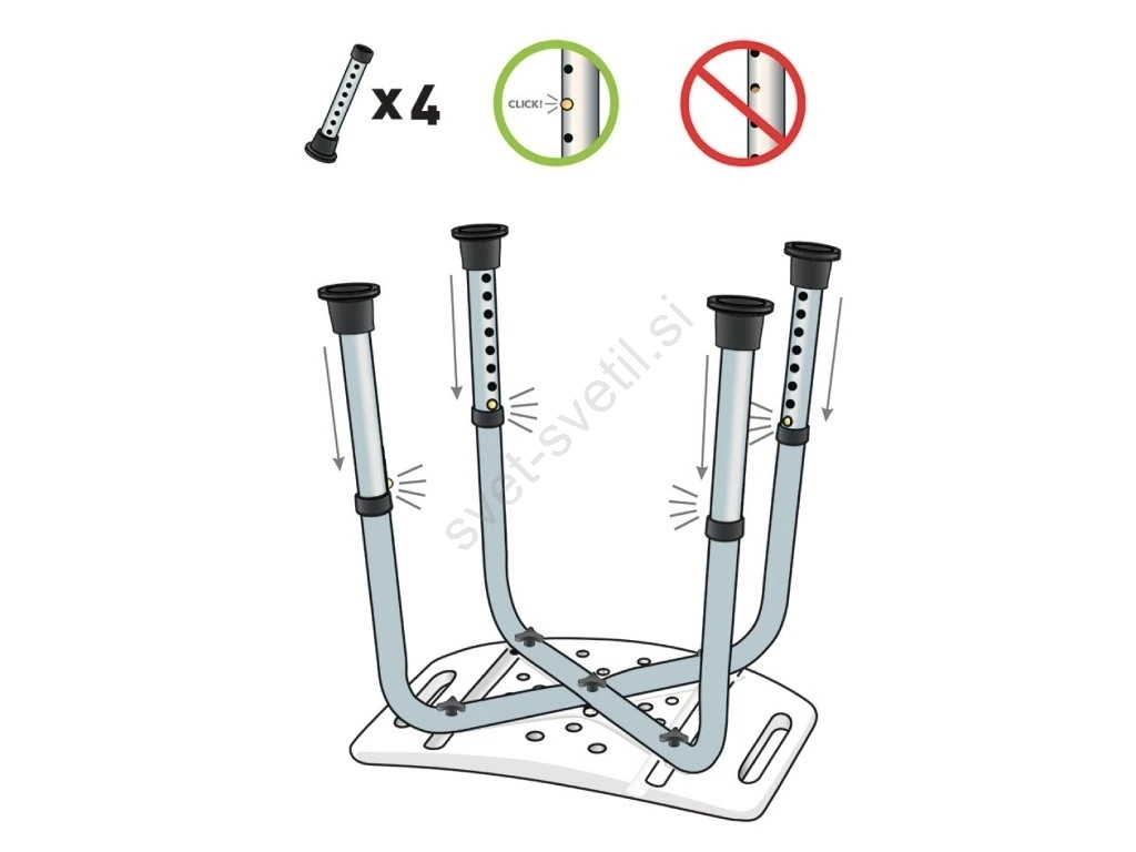 • Ima lahke aluminijaste noge, ki so nastavljive po višini.