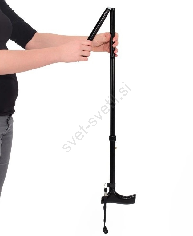 • Zložljiva palica ima ergonomski lesen ročaj.