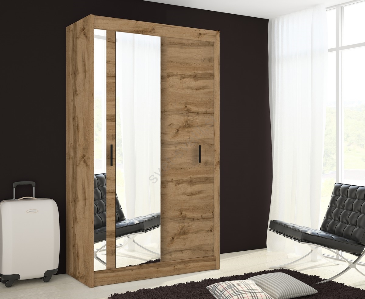 Omara za oblačila z ogledalom SABRINA 120x215 cm, hrast wotan