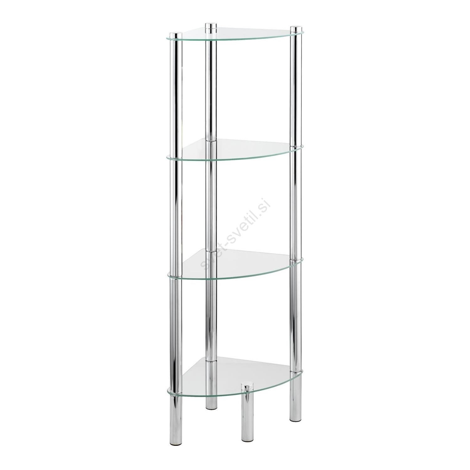• Eleganten kotni regal s 4 policami iz trdnega varnostnega stekla.