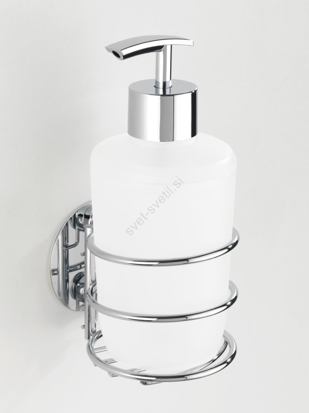 WENKO 18777100-Dozator za milo TURBO-LOC okrogel, iz jekla, 7,5x16,5 cm, sijajni krom/bela