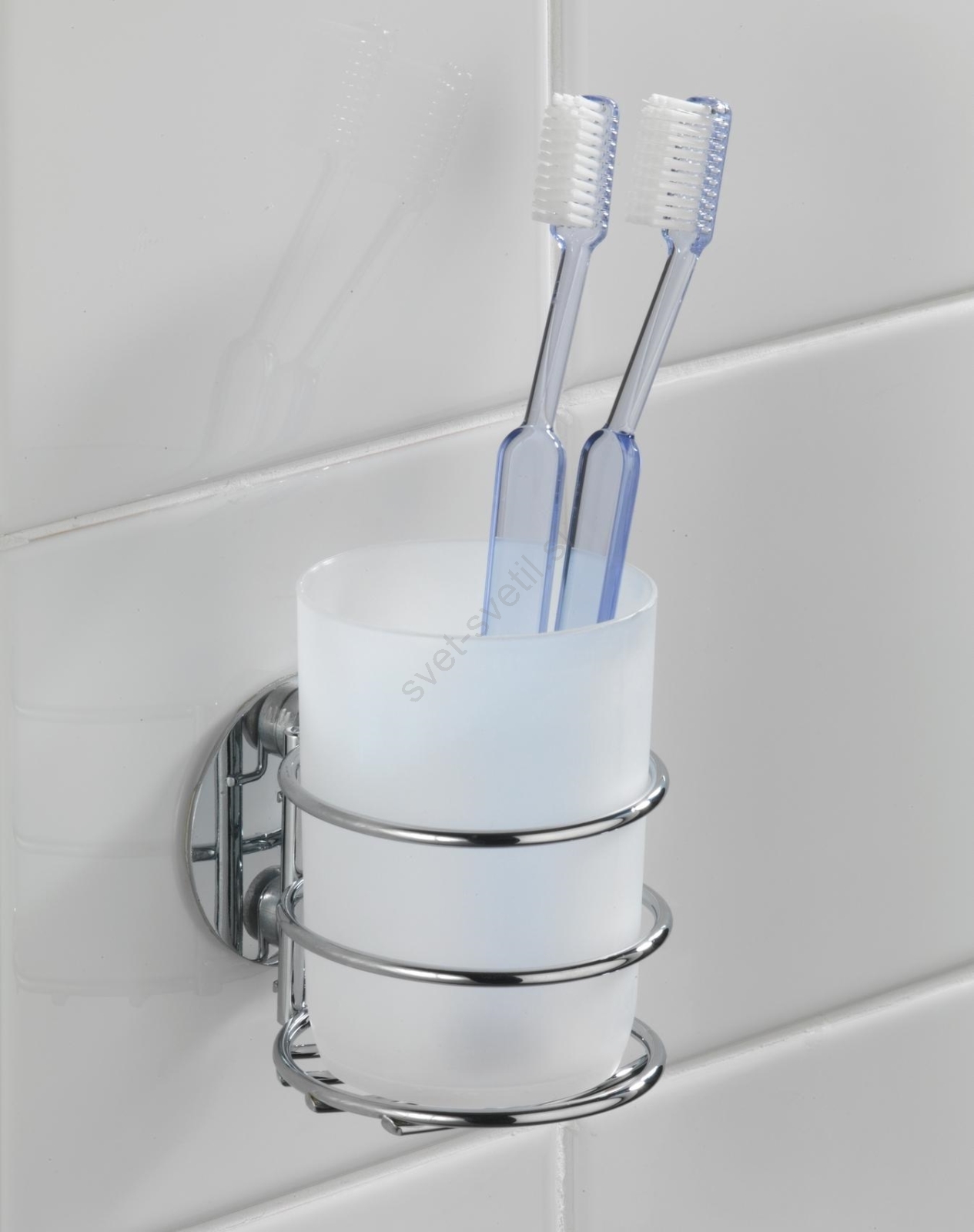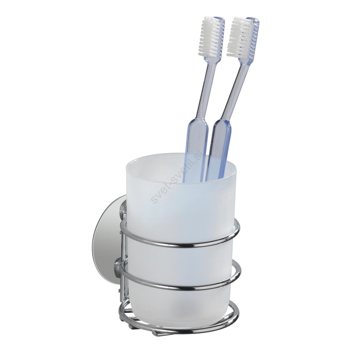 WENKO 18779100 - Kozarec za zobne ščetke TURBO-LOC, okrogel, iz jekla, 7,5x9 cm, sijajni krom/bela