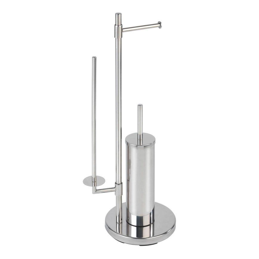 • Praktičen 3 v 1 komplet – WC ščetka, držalo za toaletni papir in vrtljivo držalo za rezervno rolo.