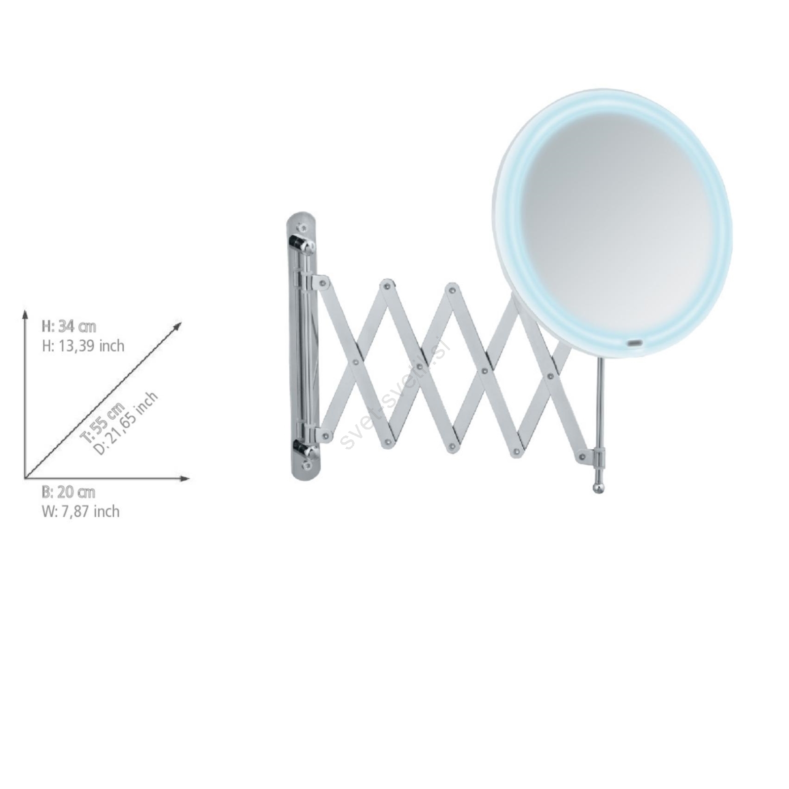 • 5-kratna povečava (Ø 20 cm) idealna za ličenje, britje ali urejanje obrvi.