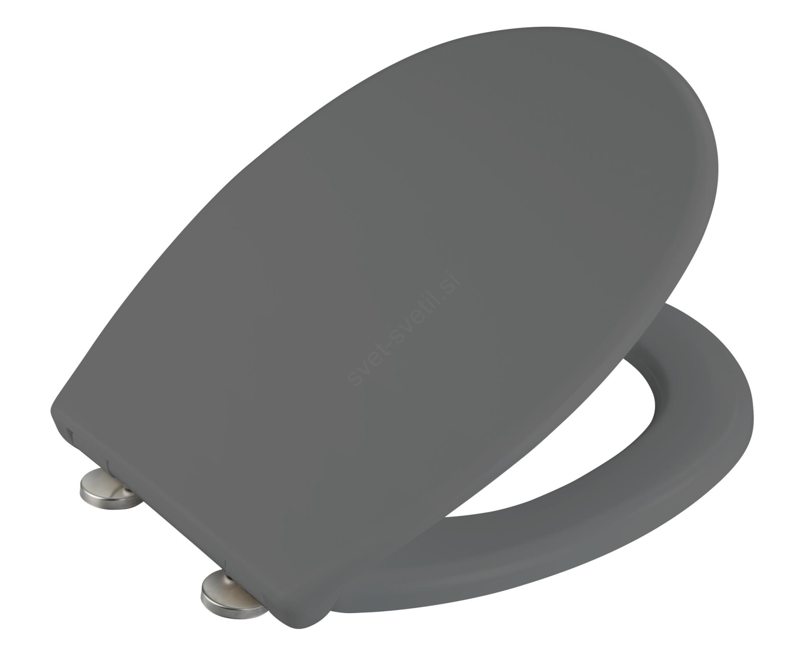 • Dizajnerski WC sedež v moderni sivi barvi, primeren za vsako kopalnico.