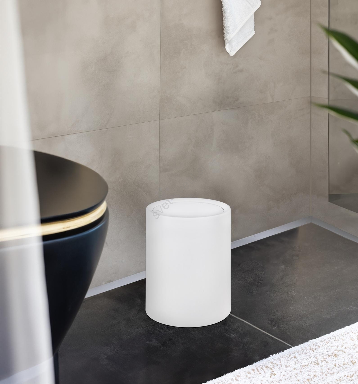• Eleganten koš za smeti s pokrovom na zamah, ki zagotavlja urejen in sodoben videz kopalnice.