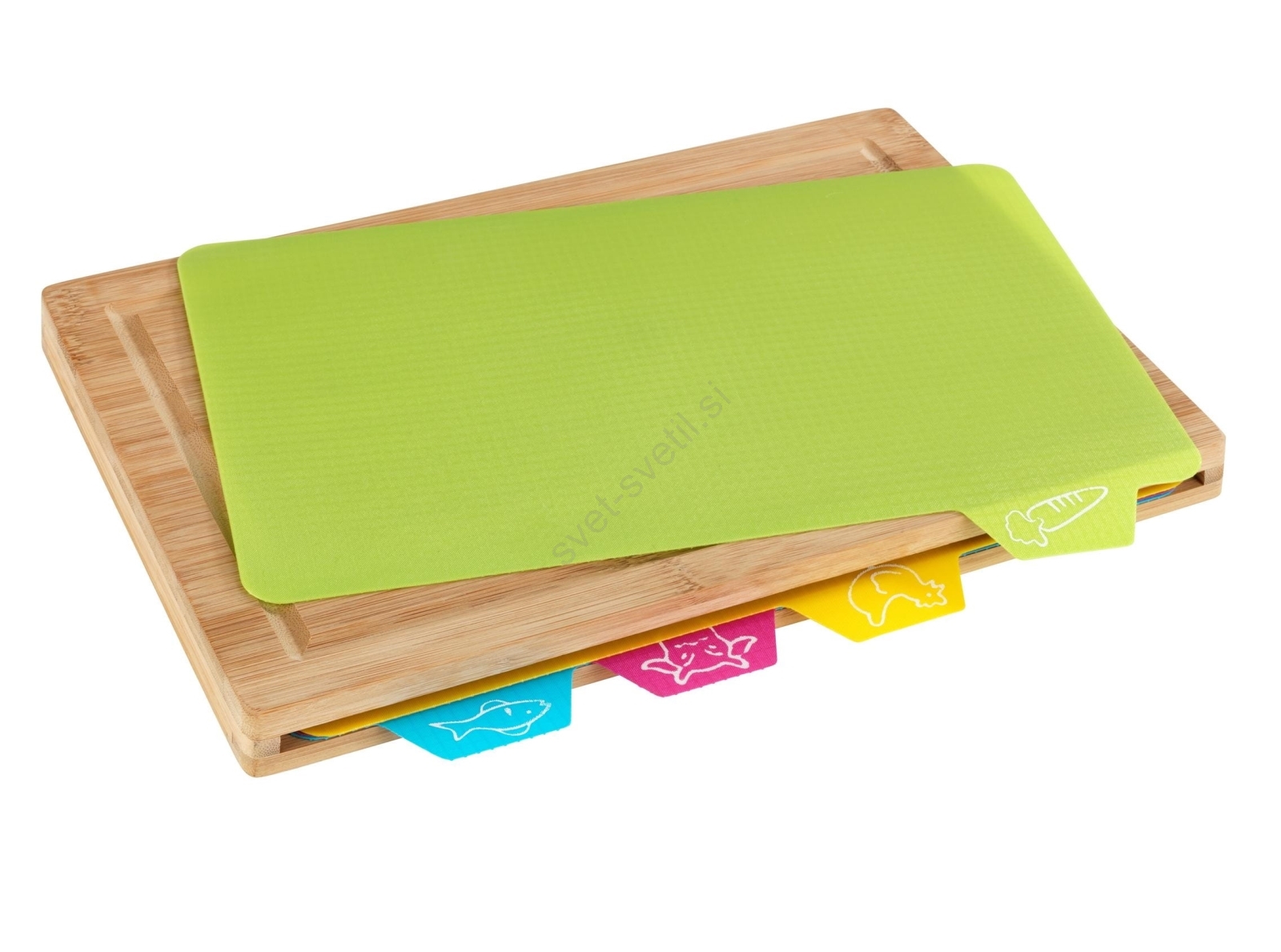 • V paketu so štiri prožne rezalne podloge za različne vrste živil.