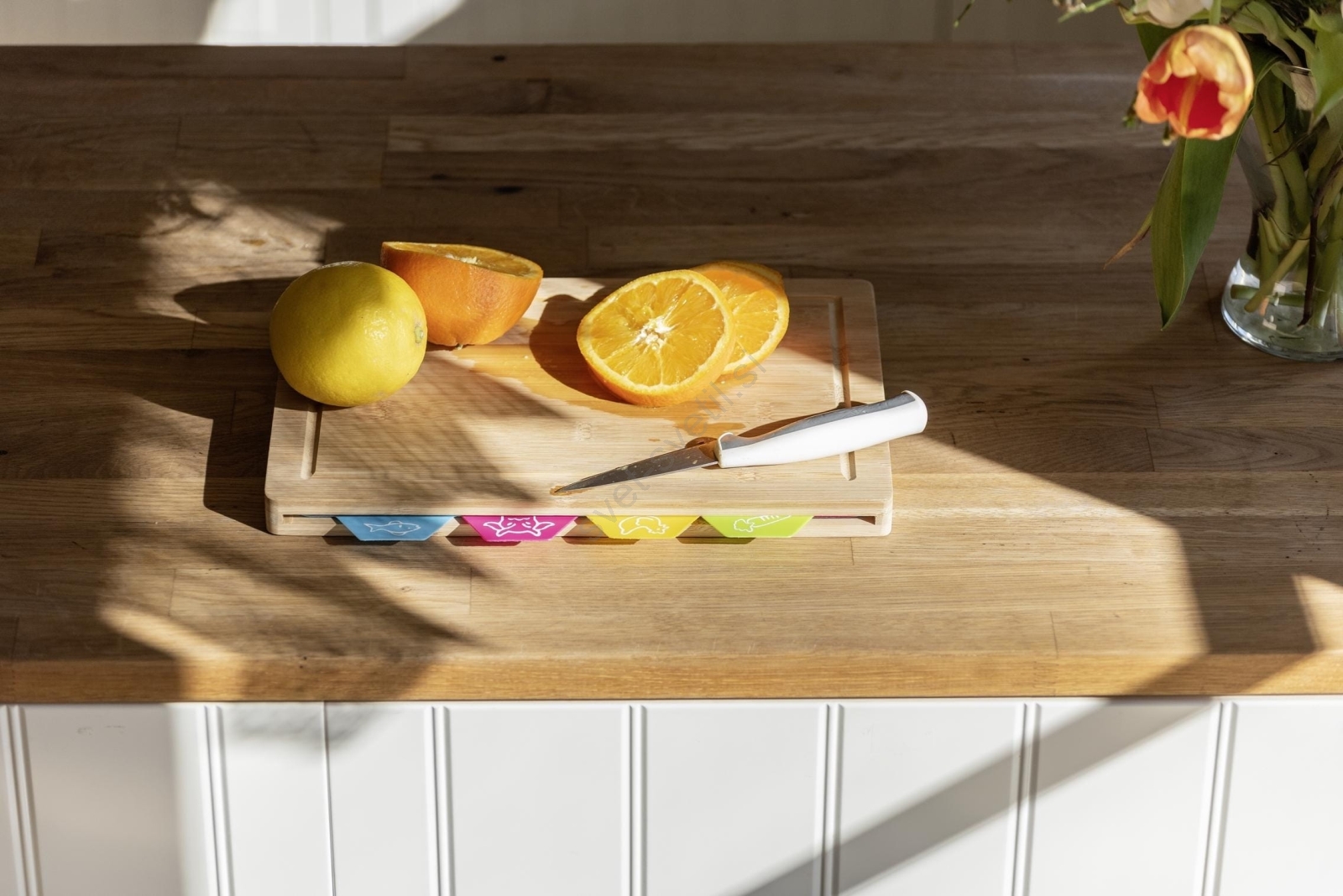 • Robustna bambusova deska, primerna tudi za serviranje ali delo s testom.