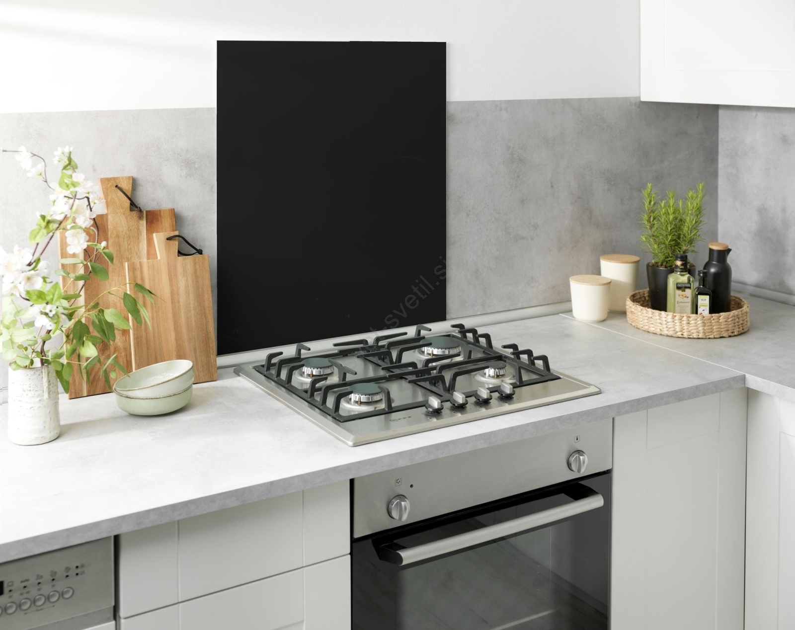 • Eleganten črn stekleni panel doda kuhinji moden videz.