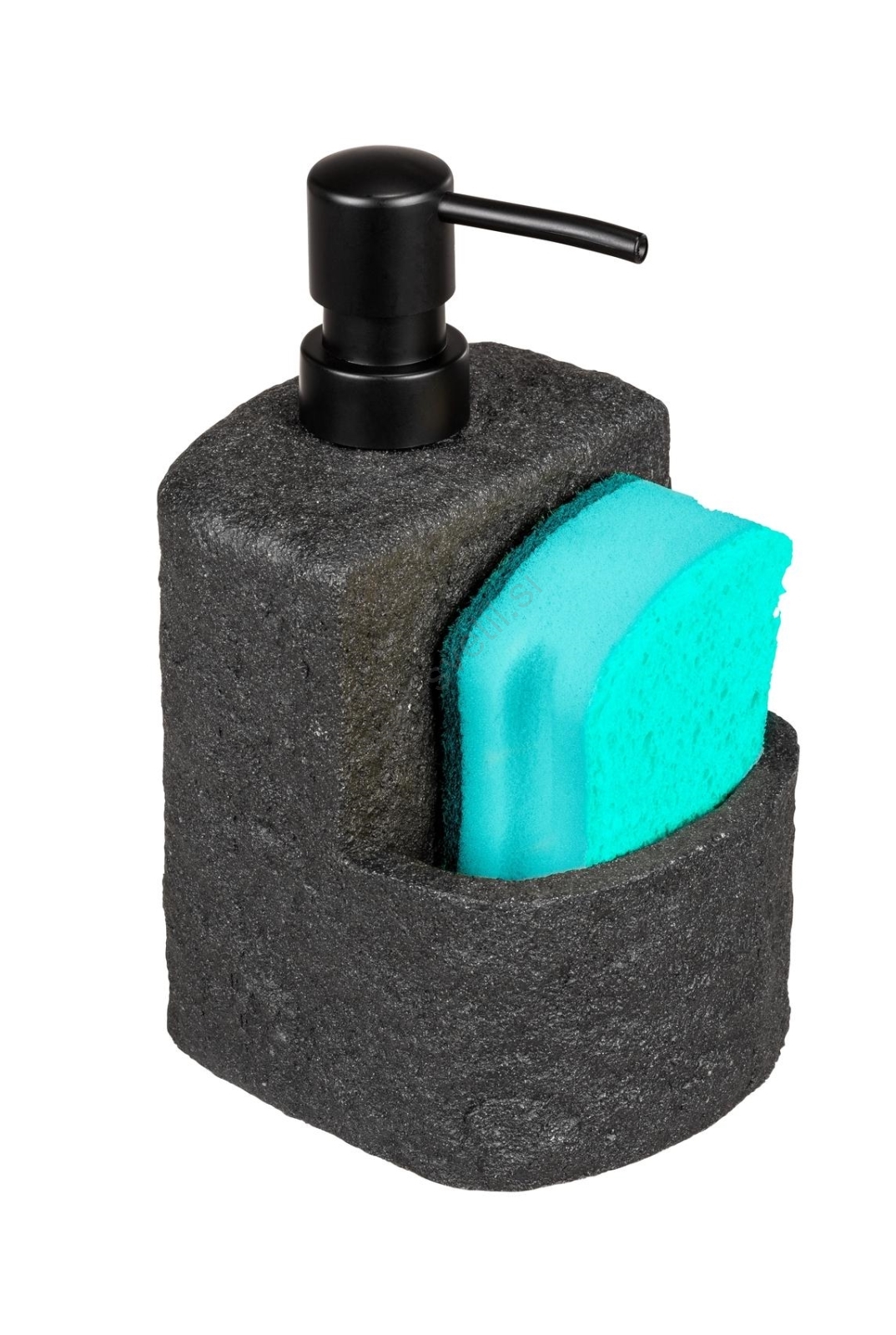 • Eleganten dozirnik za sredstvo za pomivanje posode v sodobnem črnem kamnitem dizajnu.
