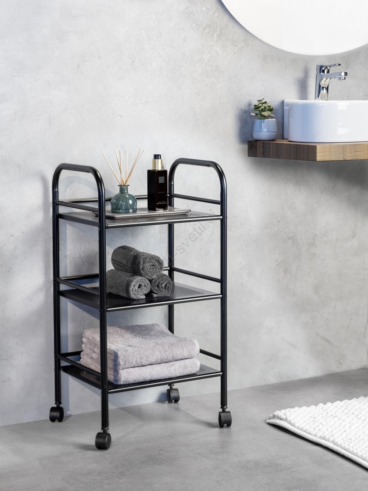 • Eleganten kopalniški voziček s tremi policami za praktično organizacijo.