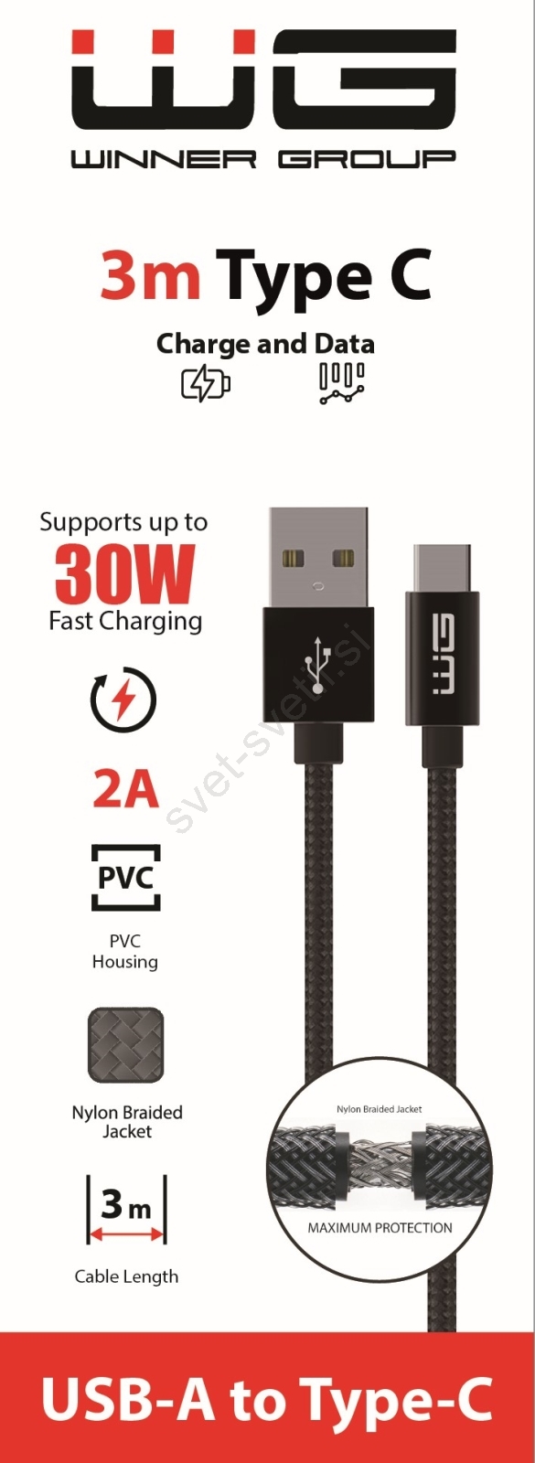Winner Group - USB kabel USB-C / USB-A 30 W 3 m črna