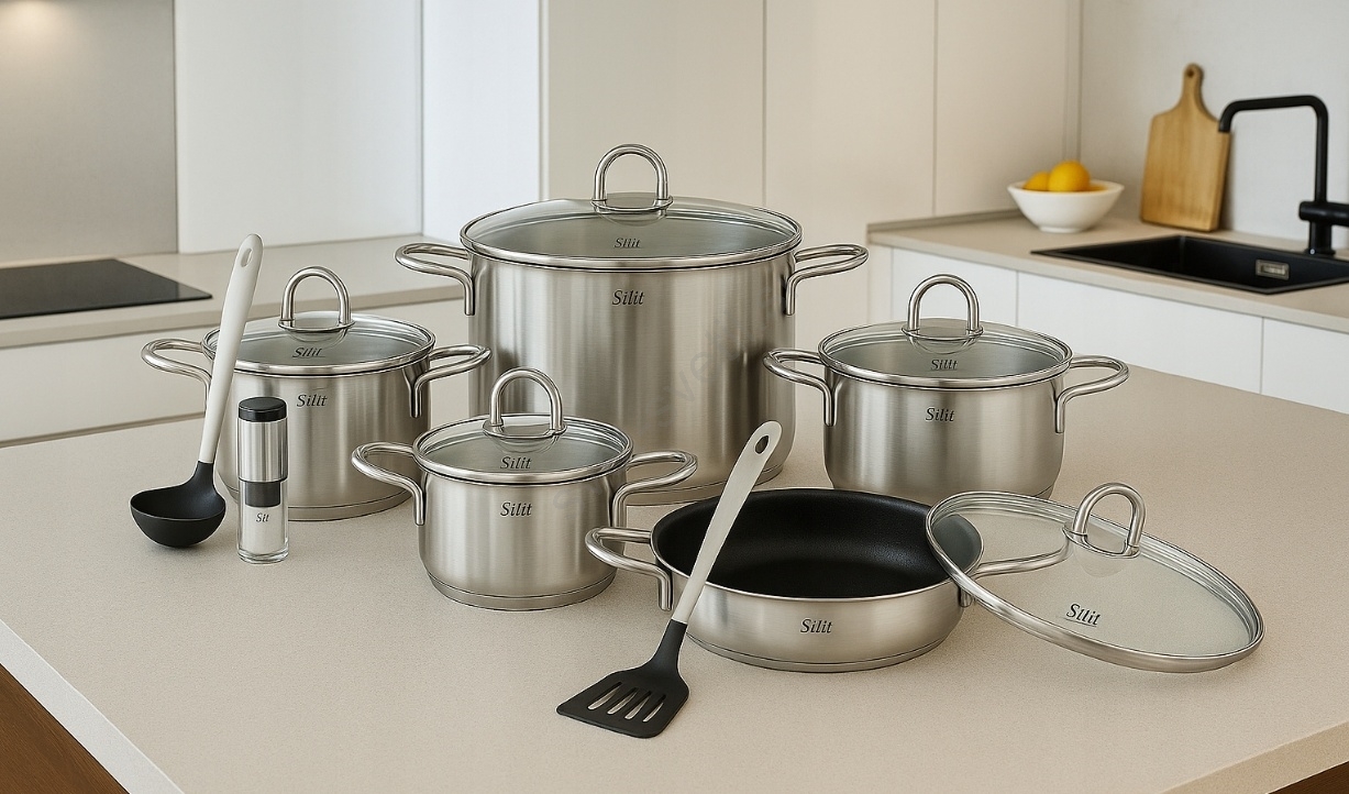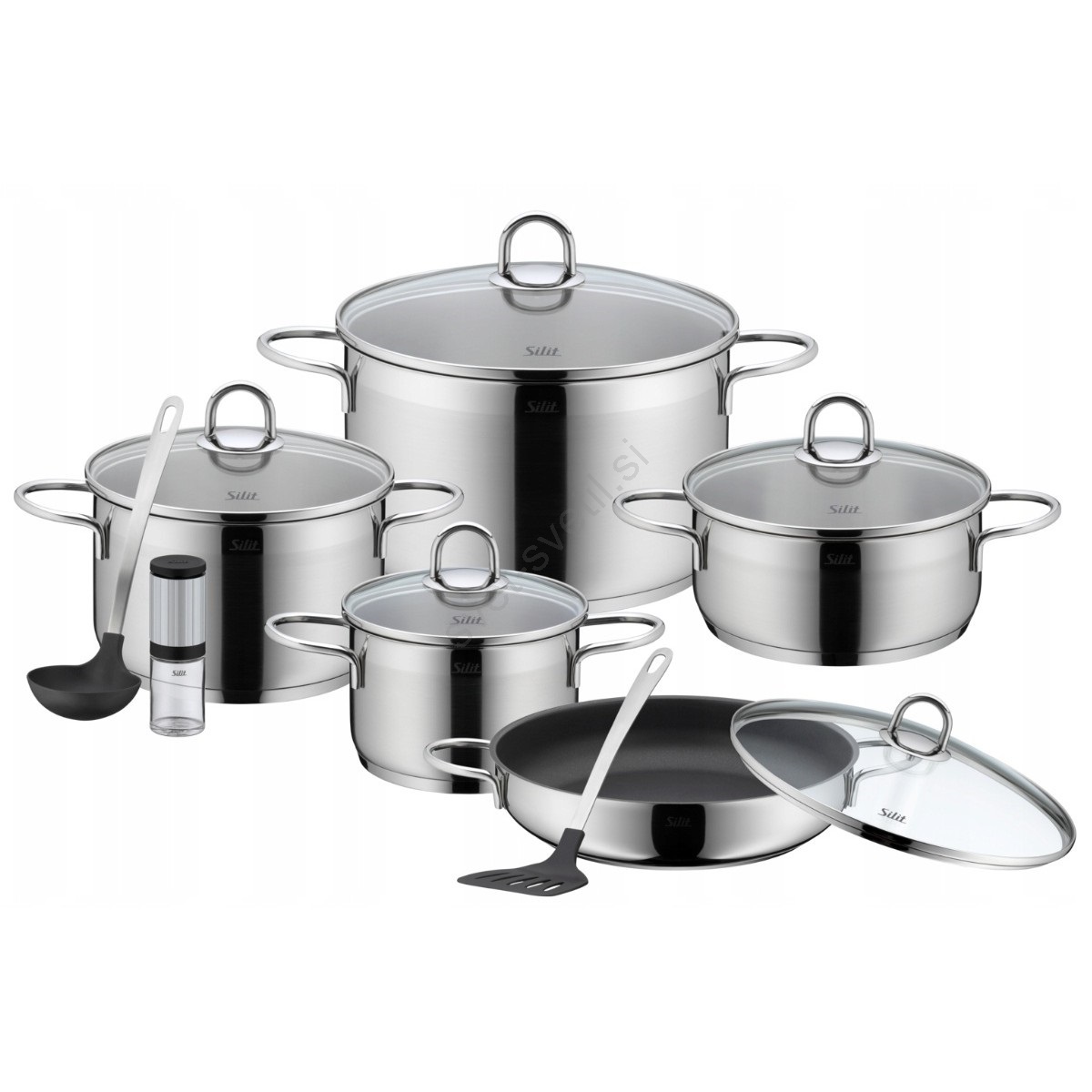 • Komplet loncev in ponev Silit Diamant predstavlja popolnoma opremljen komplet za domače kuhanje višjega razreda — vključuje več kosov, primernih za različne vrste jedi.