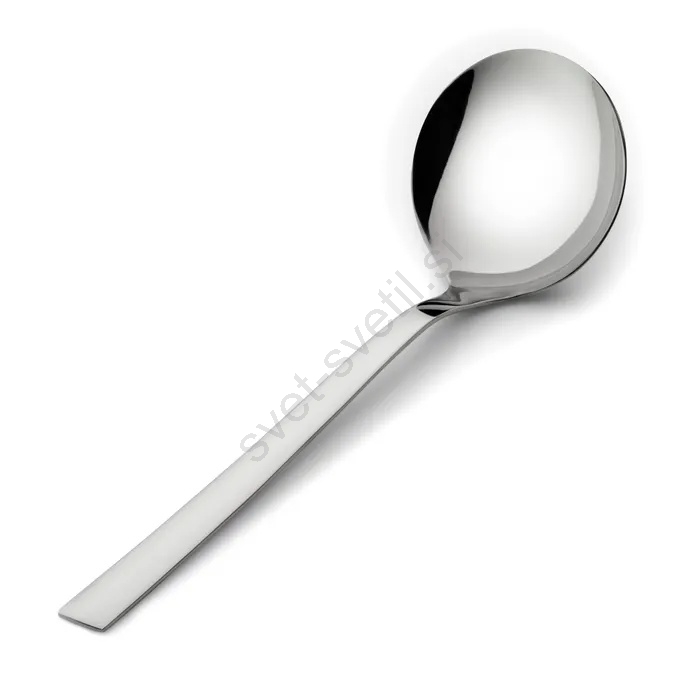 • Ima zaobljeno zajemalno glavo, ki omogoča varno polnjenje krožnikov, terin in skodelic brez razlitja.