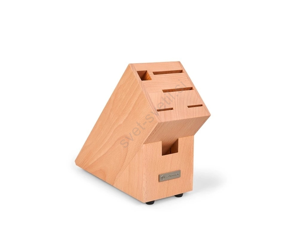 • Blok za nože je izdelan iz bukovega lesa in nudi prostor za shranjevanje skupno 4 nožev, palice za ostrenje in kuhinjskih škarij.