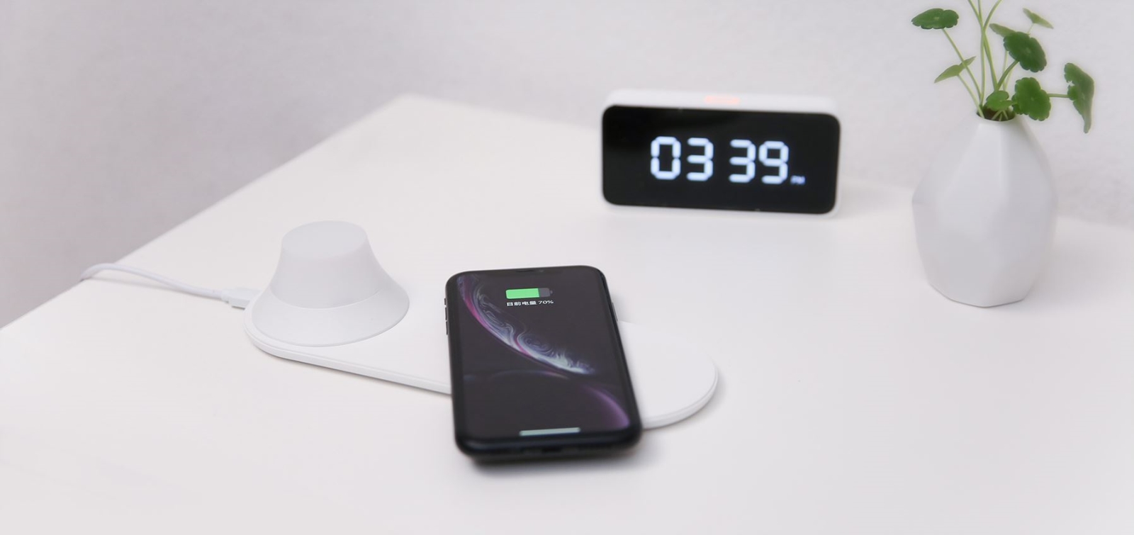 Brezžični polnilnik in nočna svetika v enem bosta idealna oprema za vašo spalnico, k ivam bo omogočila ne samo brezžično polnjenje vašega telefona, temveč vam bo zagotovila tudi nežno svetlobo, v kolikor boste ponoči morali vstati.