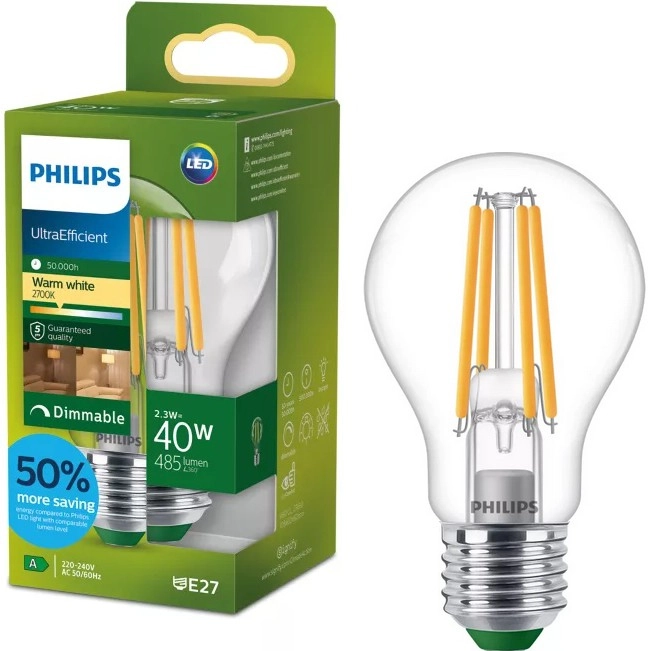 Zatemnjiva LED žarnica Philips ULTRAEFFICIENT VINTAGE A60 E27/2,3W/230V 2700K