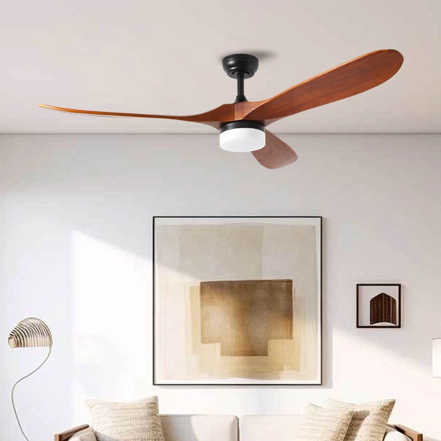 • ZEVENTI - LED stropni ventilator GINOSA LED/18W/230V 3000/4000/6000K Wi‑Fi Tuya črna/hrast + daljinski upravljalnik