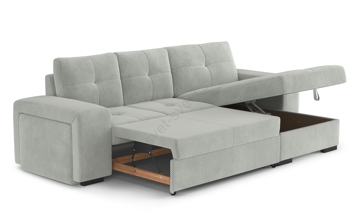 • Zaradi sodobnega prešivanja in premišljenega dizajna je ta kotna sedežna garnitura idealna za manjše prostore, hkrati pa ponuja veliko ležišče in dovolj prostora za shranjevanje.
