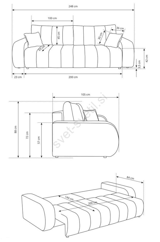 • Zadnji del troseda krasi kakovostno oblazinjenje, kar omogoča prostostoječo postavitev.