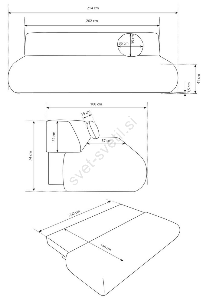 • Sedežna garnitura razpolaga z prostornim predalom za shranjevanje za posteljnino in druge sezonske stvari.