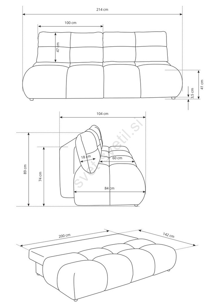 • Trosed ima prostoren shranjevalni predal, za shranjevanje posteljnine.