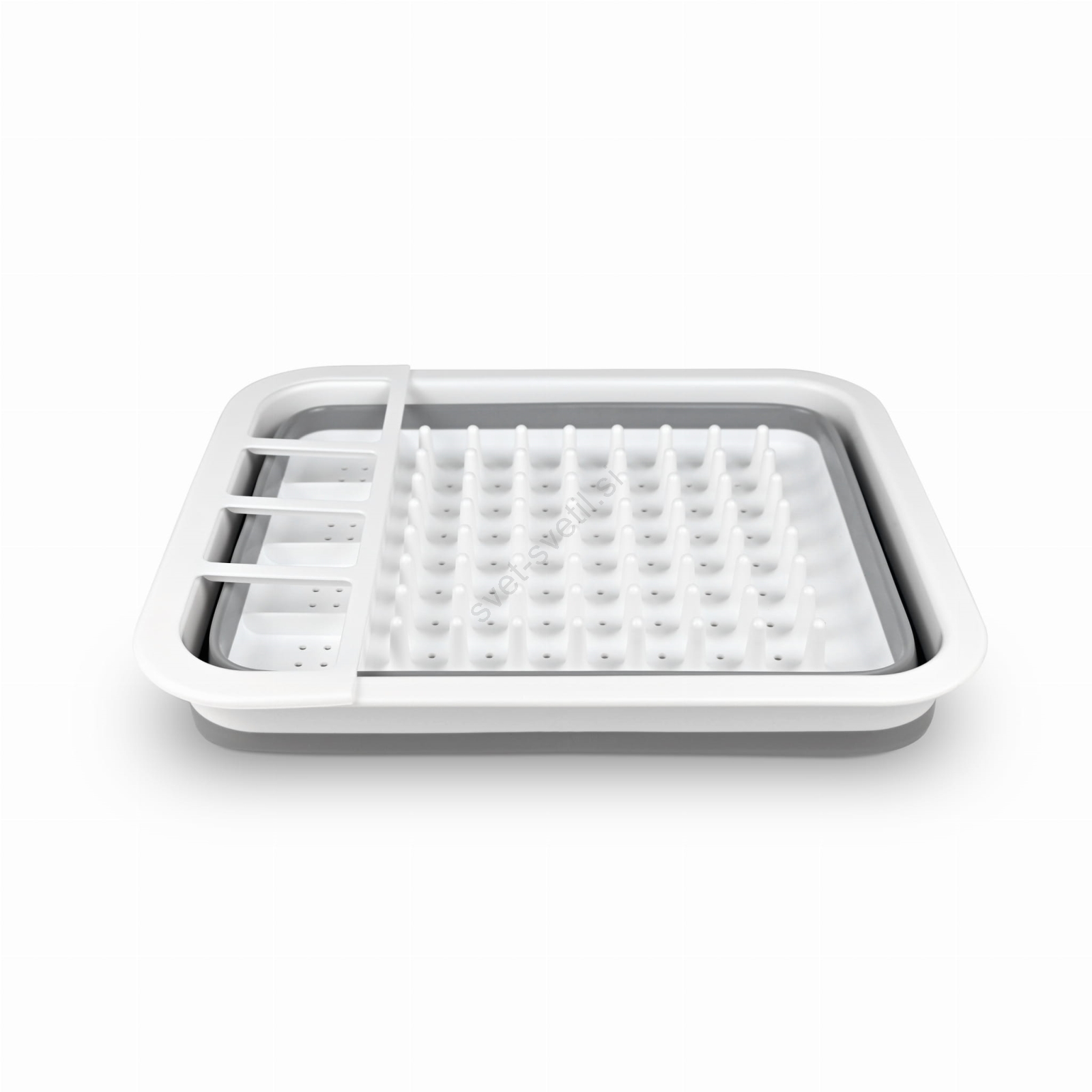 • Zložljiv silikonski odcejalnik je praktičen pripomoček za sušenje posode, kozarcev in jedilnega pribora — idealen za manjše kuhinje, stanovanja, prikolice ali počitniške hiše.