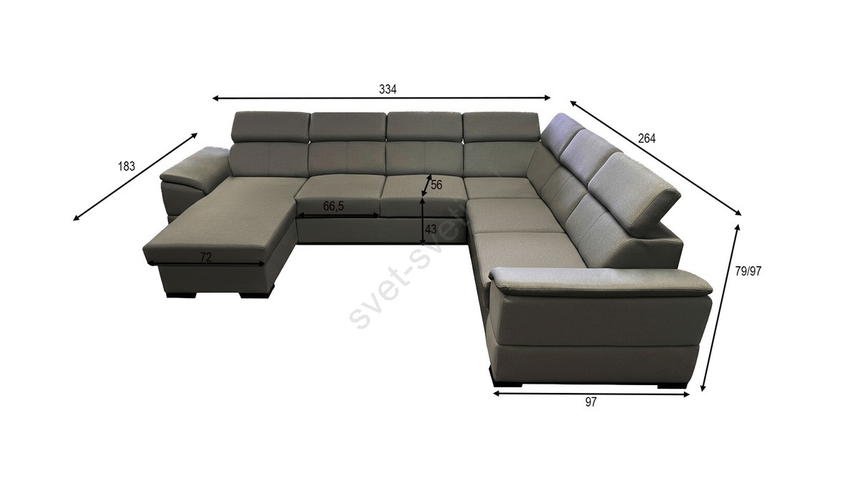 • Prostorna kotna sedežna garnitura v obliki črke U nudi udobje in eleganten videz.
