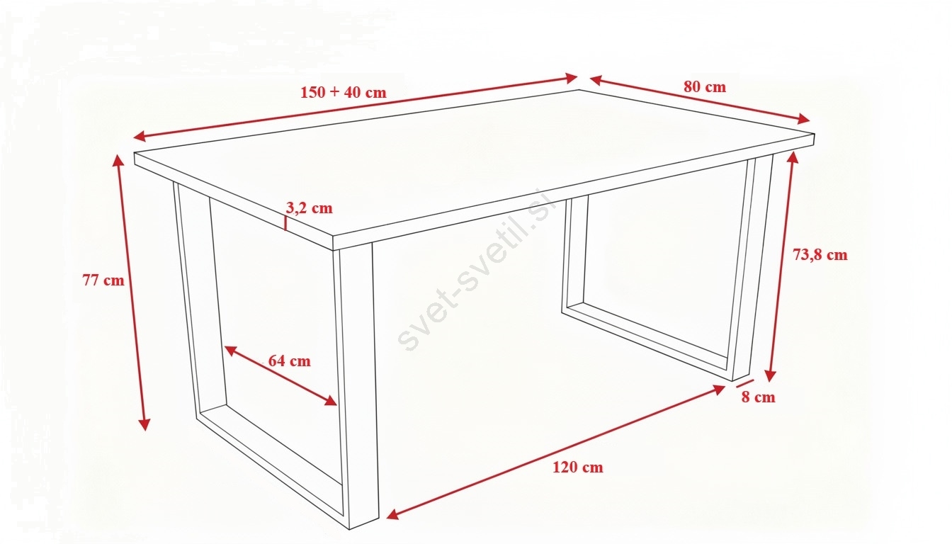 • Dimenzije mize v raztegnjenem stanju: 190 x 80 cm.