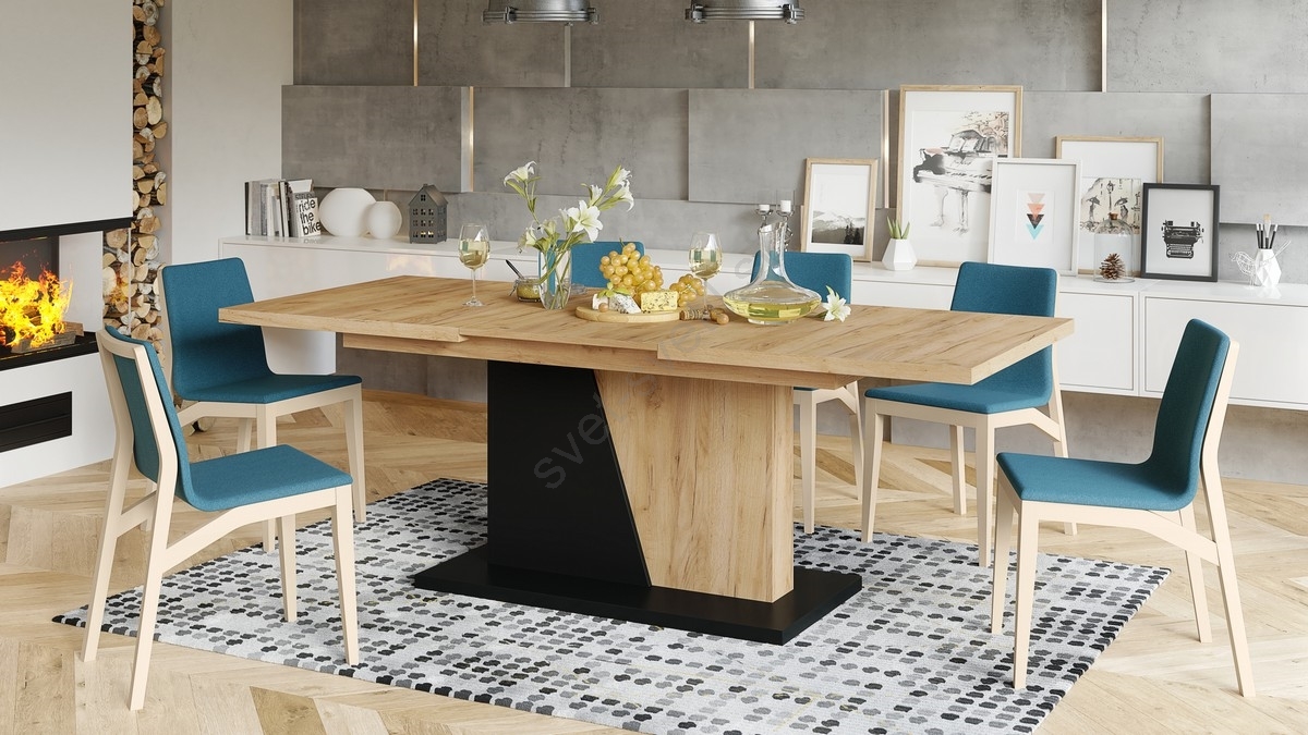 • Raztegljiva jedilna miza NINO, hrast craft/črna